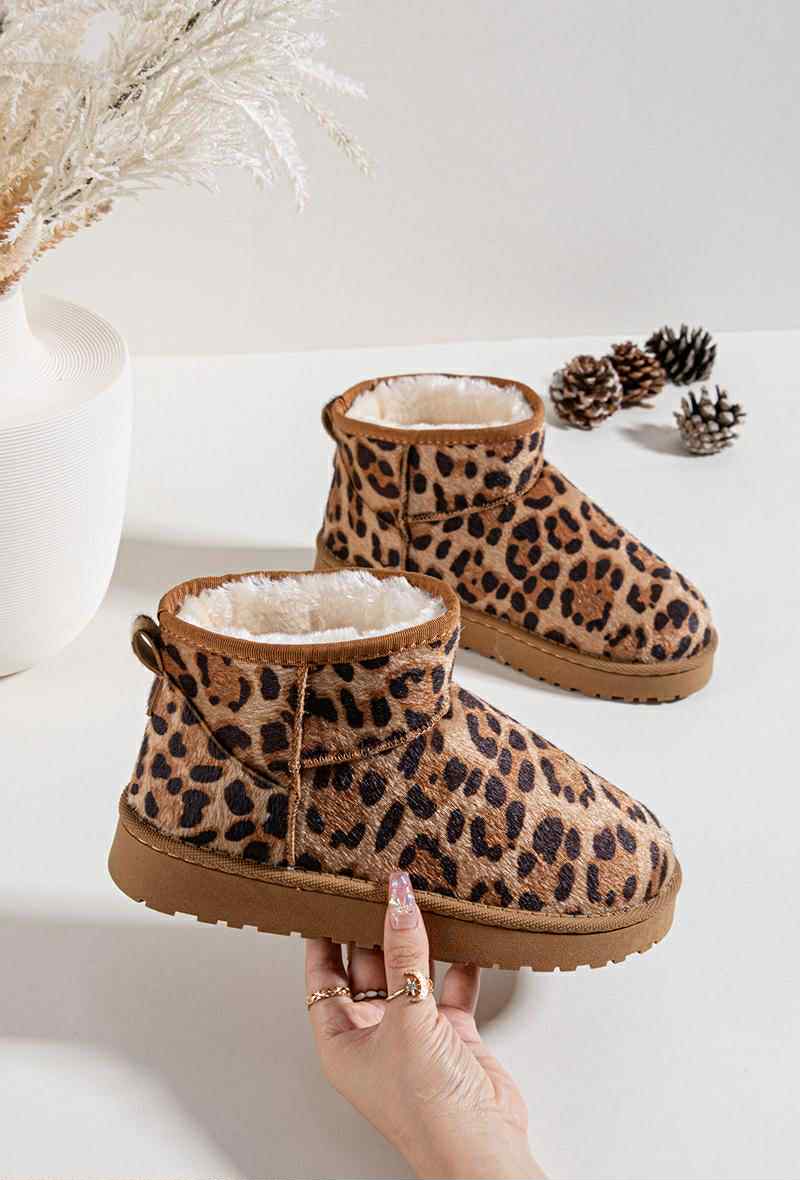Χαρίστε στο παιδί σας άνεση και στυλ με τα παιδικά μποτάκια Leopard Cozy. Με μοντέρνο λεοπάρ σχέδιο και ζεστή εσωτερική επένδυση γούνας, κρατούν τα ποδαράκια ζεστά ακόμη και τις πιο κρύες μέρες. Η αντιολισθητική σόλα προσφέρει ασφάλεια σε κάθε βήμα, ενώ το εύκολο κλείσιμο τα καθιστά ιδανικά για καθημερινή χρήση. Ένα ζευγάρι που συνδυάζει μόδα και πρακτικότητα – το αγαπημένο μποτάκι κάθε μικρής fashionista!