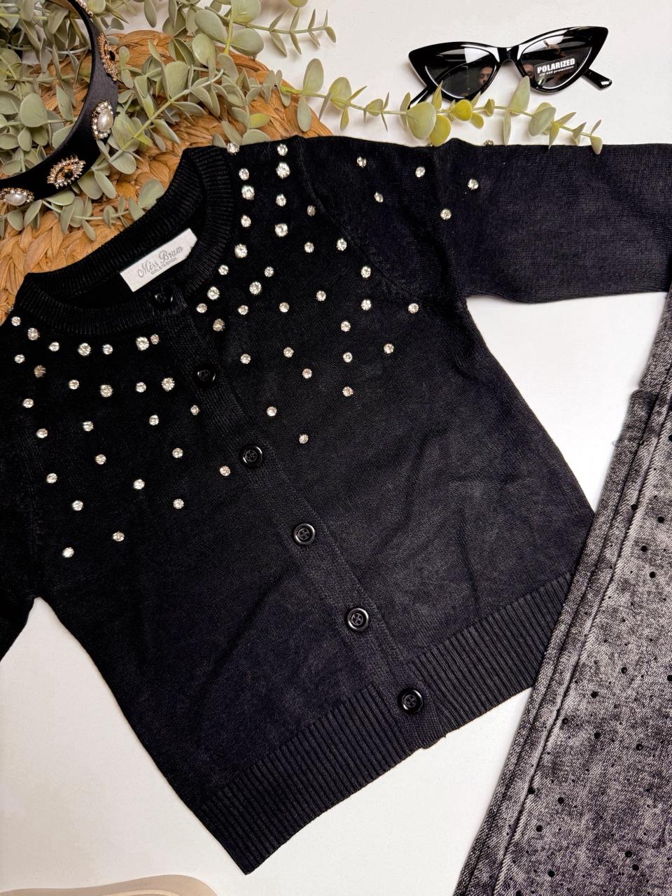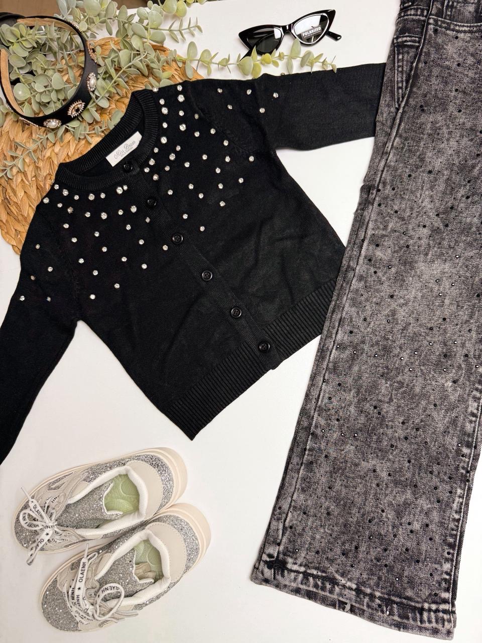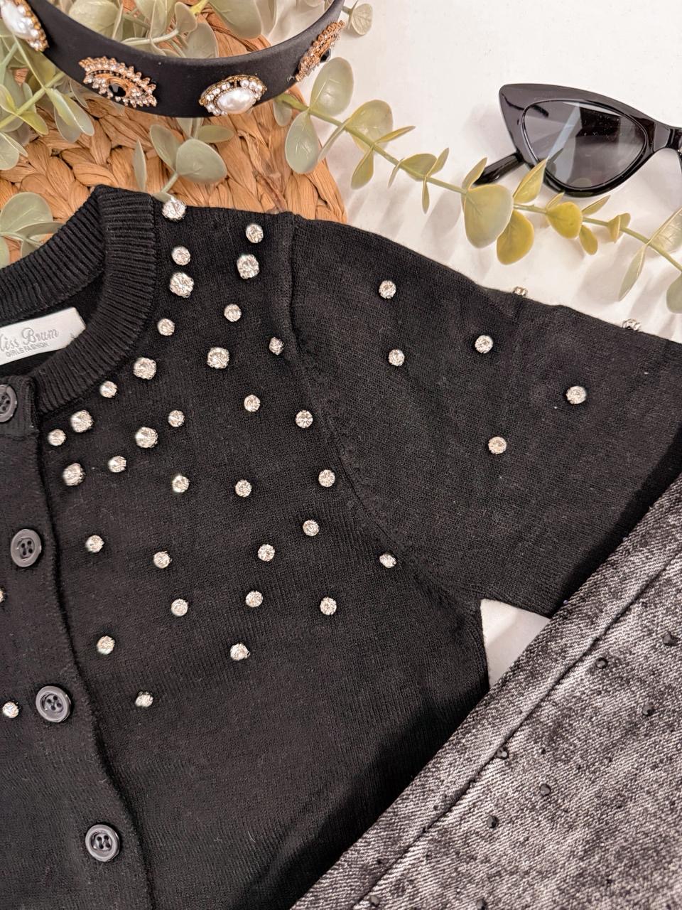 Κομψότητα και λάμψη σε κάθε εμφάνιση με αυτή τη μαύρη κοριτσίστικη ζακέτα! Σχεδιασμένη για πιο επίσημες περιστάσεις αλλά και ιδιαίτερες εξόδους, η ζακέτα φτάνει μέχρι τη μέση και είναι διακοσμημένη με διακριτικά στρασάκια που χαρίζουν μια elegant πινελιά. Κλείνει με μαύρα κουμπιά που διατηρούν το look μονόχρωμο και σοφιστικέ. Ένα κομμάτι που δεν πρέπει να λείπει από τη ντουλάπα κάθε μικρής κυρίας.