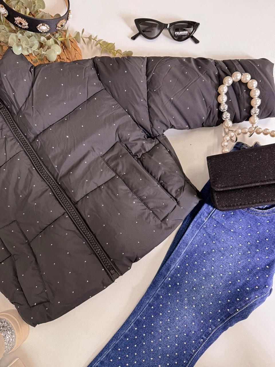 Ανακάλυψε το παιδικό μπουφάν Shiny Star με φερμουάρ, τσέπες και στρας σε όλη την επιφάνεια. Ιδανικό για στυλάτες εμφανίσεις με άνεση!