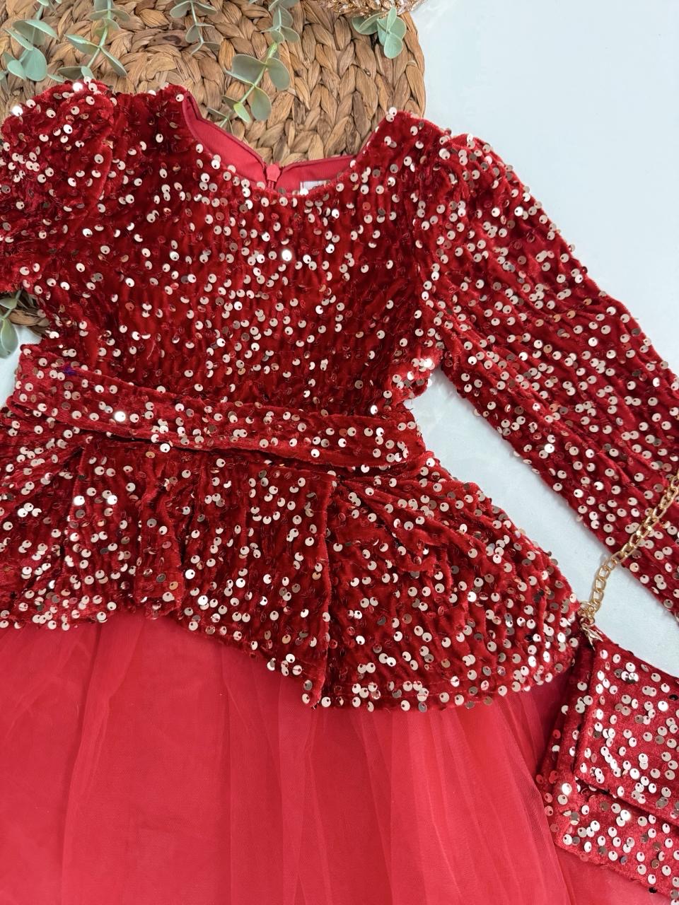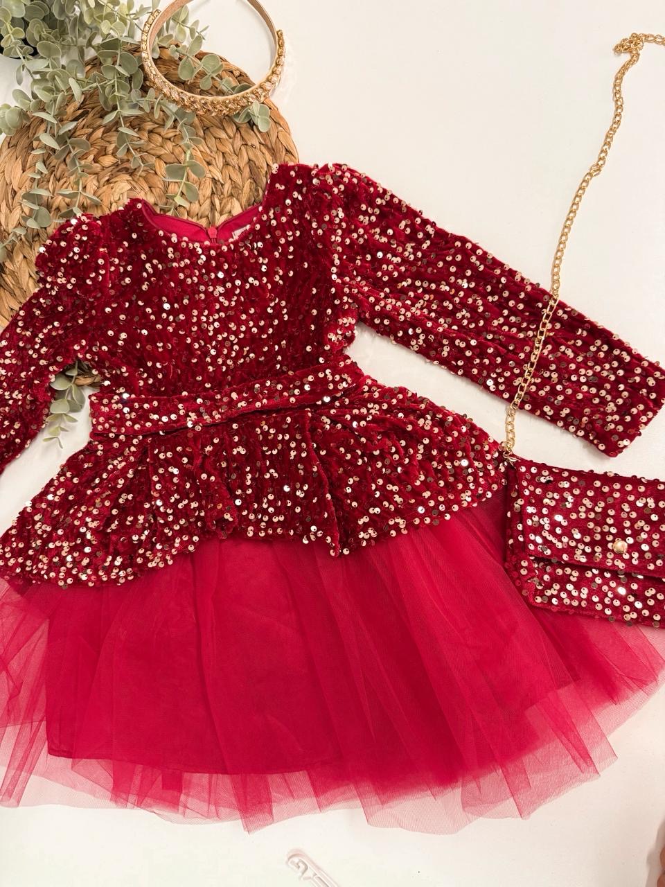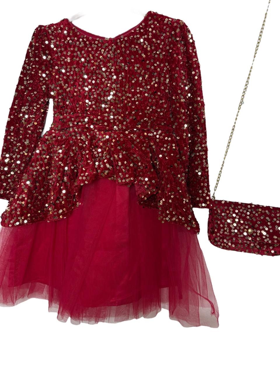 Ανακάλυψε το παιδικό φόρεμα Velvet Glam από βελούδο με παγιέτες, τούλι και τσαντάκι. Με διπλή φόδρα και μακριά μανίκια – ιδανικό για κάθε γιορτινή εμφάνιση!