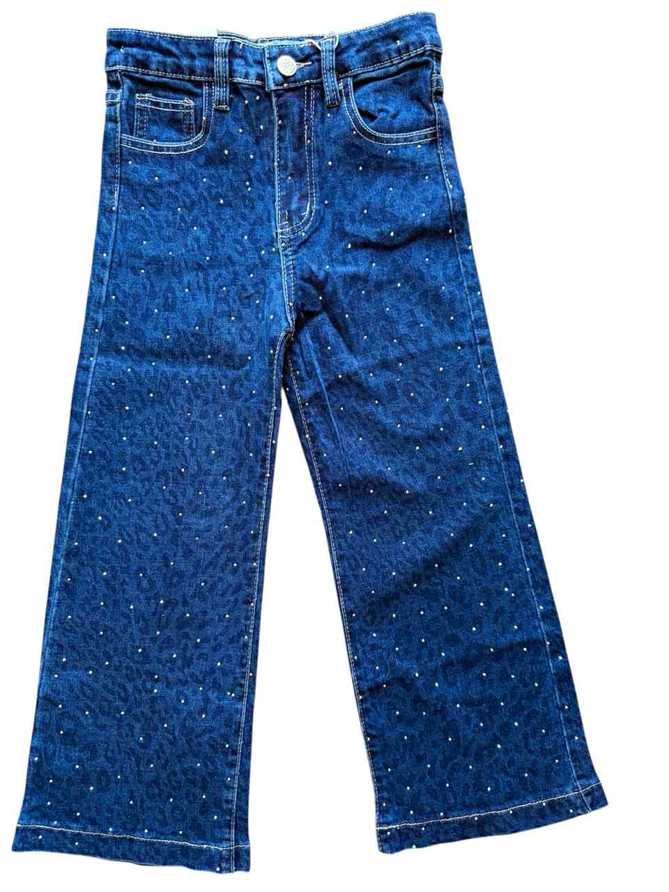 Στυλάτο παιδικό τζιν με μοναδικό διακριτικό animal print σχέδιο και λαμπερά στρας υφασμένα στο ύφασμα, που χαρίζουν ξεχωριστή λάμψη και μοντέρνο look. Το εσωτερικό ρυθμιζόμενο λάστιχο στη μέση εξασφαλίζει τέλεια εφαρμογή και άνεση όλη μέρα.