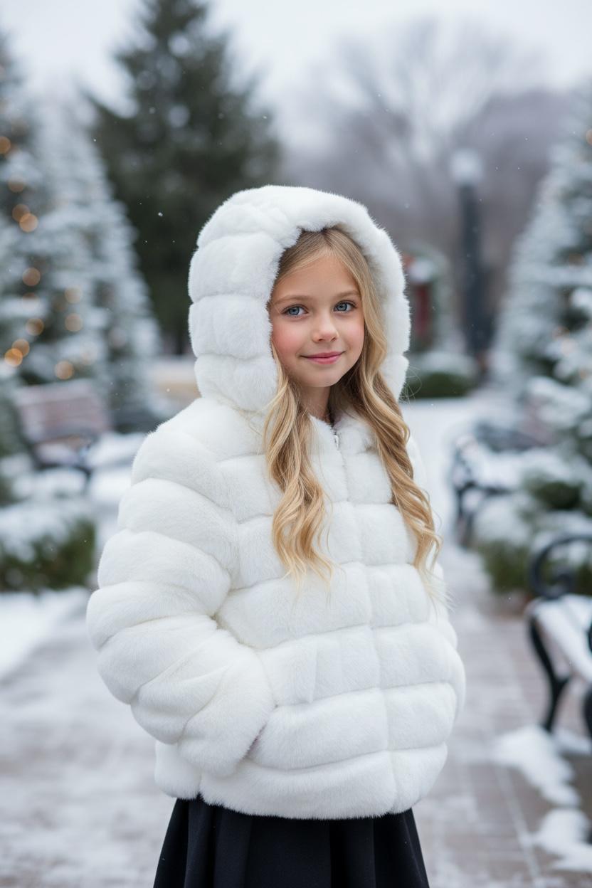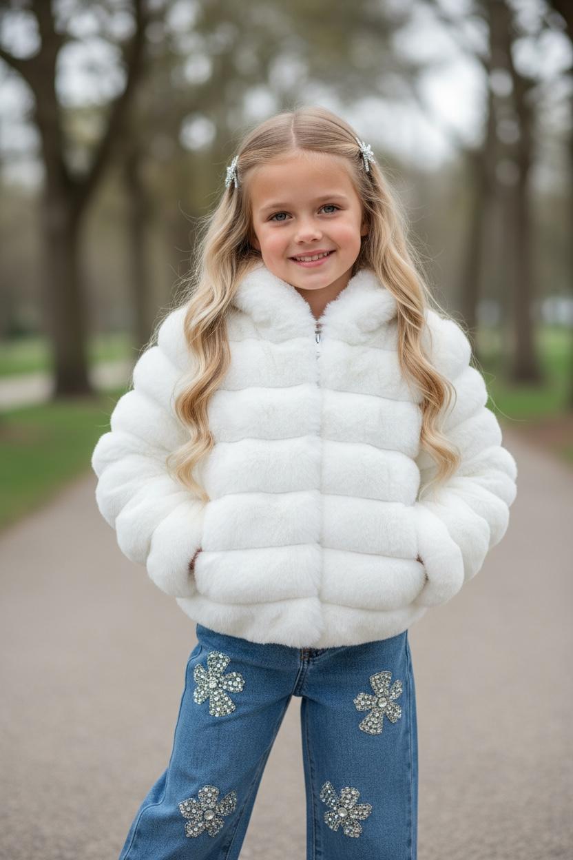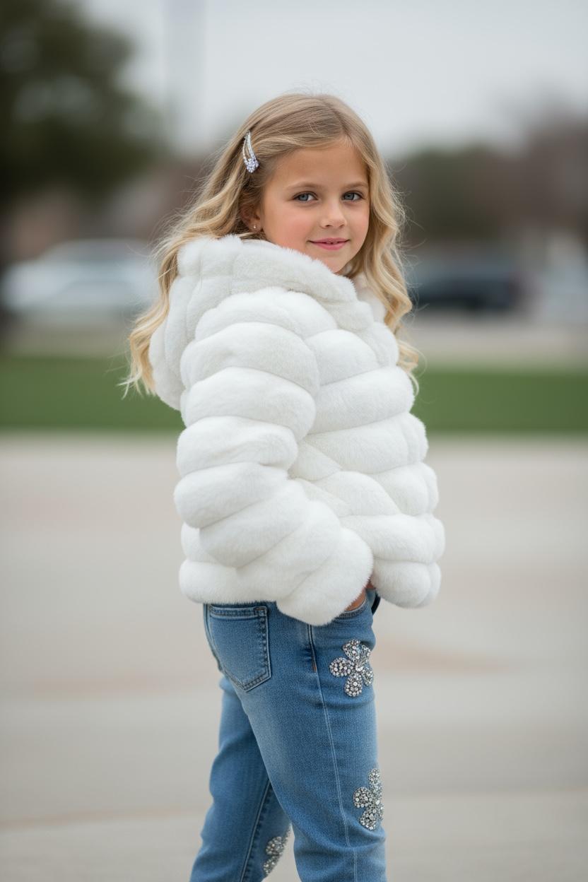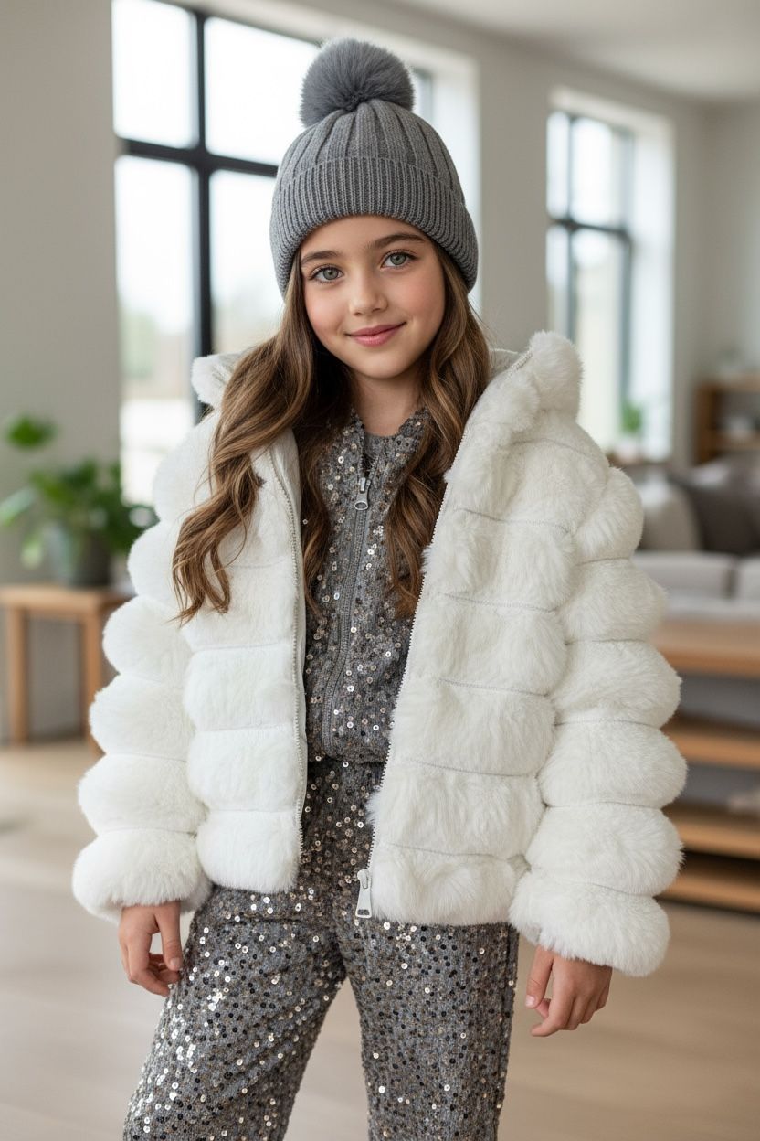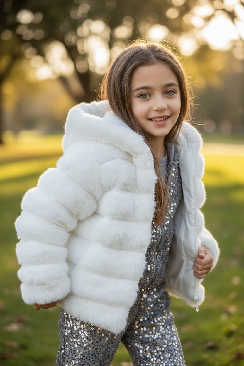Η Arctic Cozy Fur Jacket – White Hood Edition είναι η απόλυτη επιλογή για τις μικρές fashionistas που αγαπούν τη ζεστασιά και την κομψότητα!
