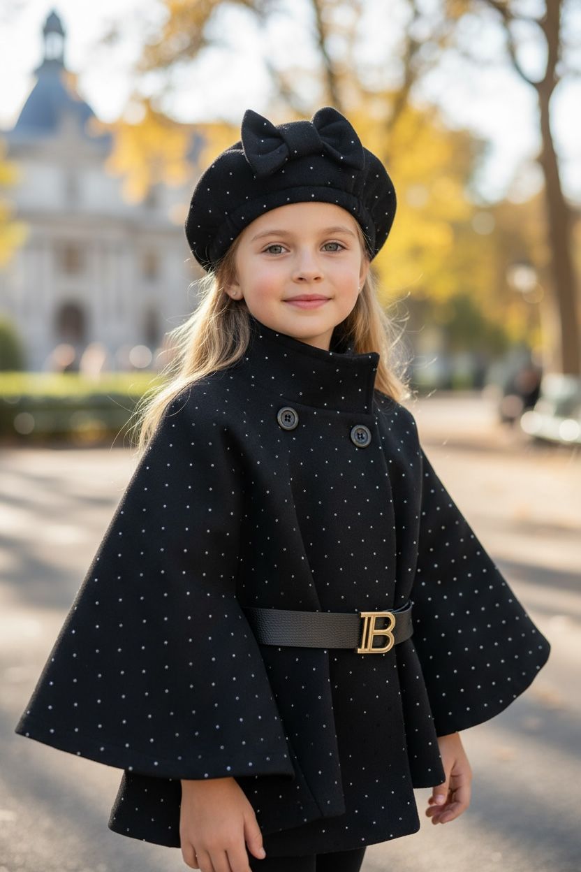 Το Elegant Star Cape Set είναι ένα κομψό σετ που περιλαμβάνει παιδική κάπα και μπερέ στο ίδιο ύφασμα.