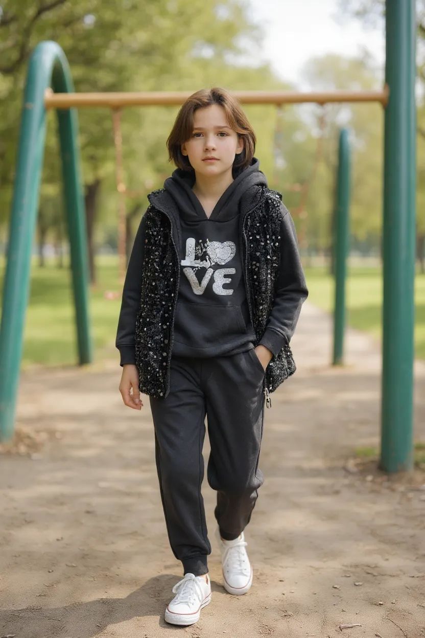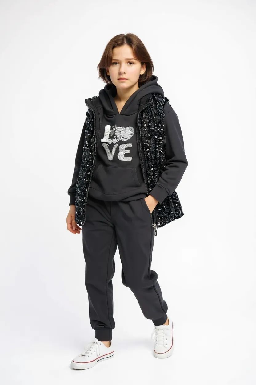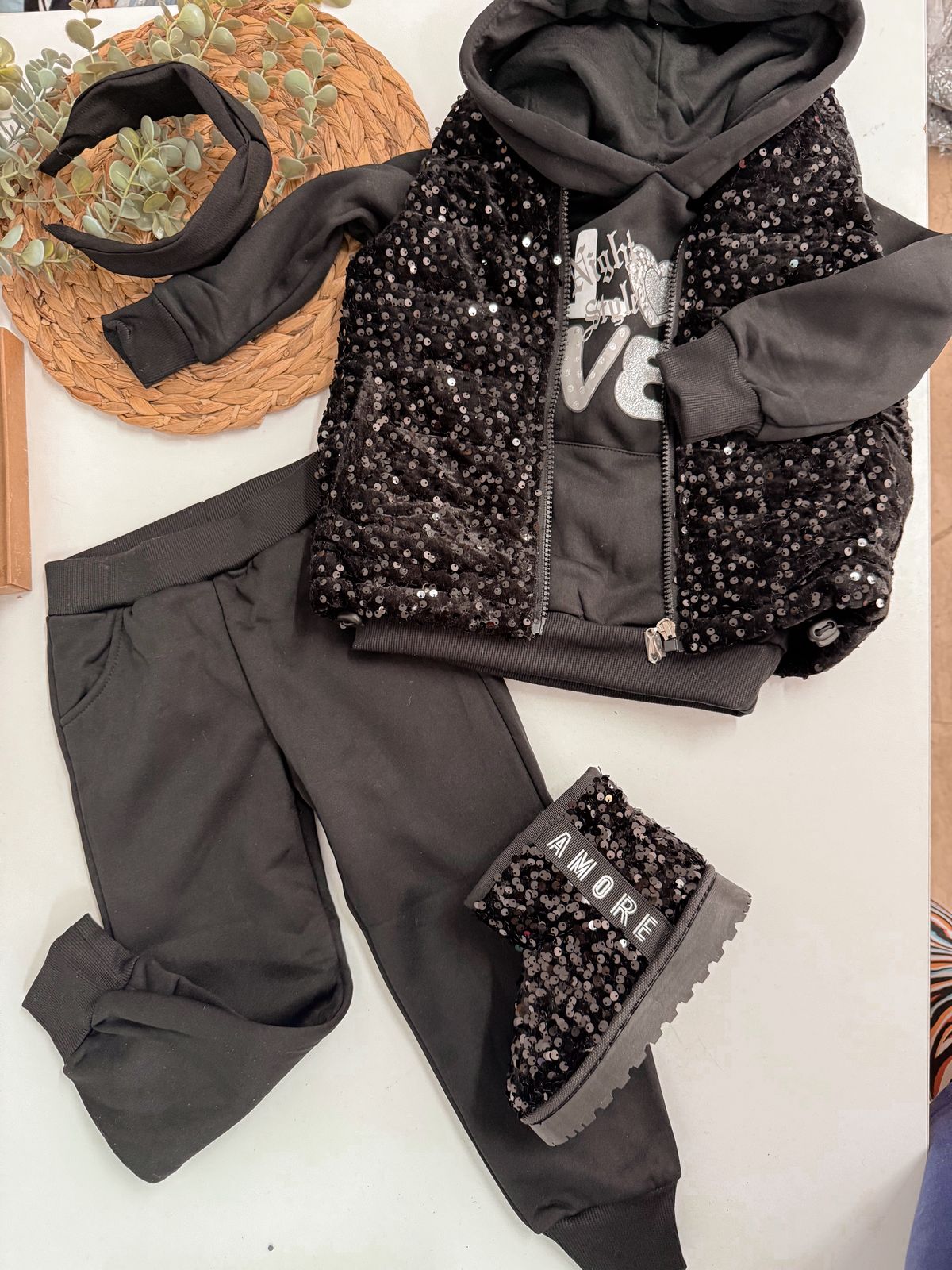 Ανανεώστε τη γκαρνταρόμπα της μικρής σας με το υπέροχο 3-κομμάτιο σετ Emily – Black Sparkle Set. Το σετ περιλαμβάνει: