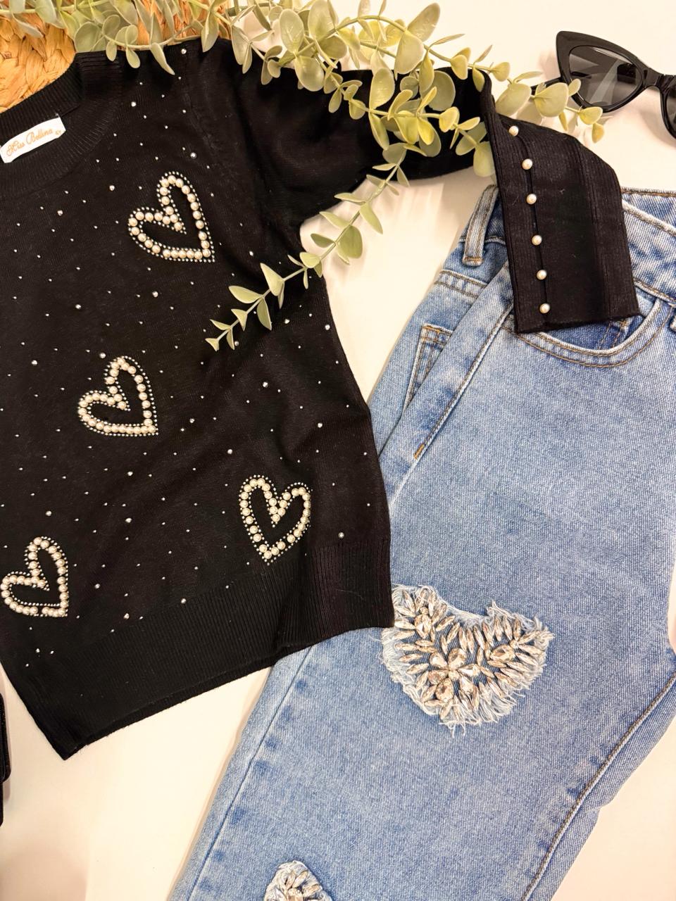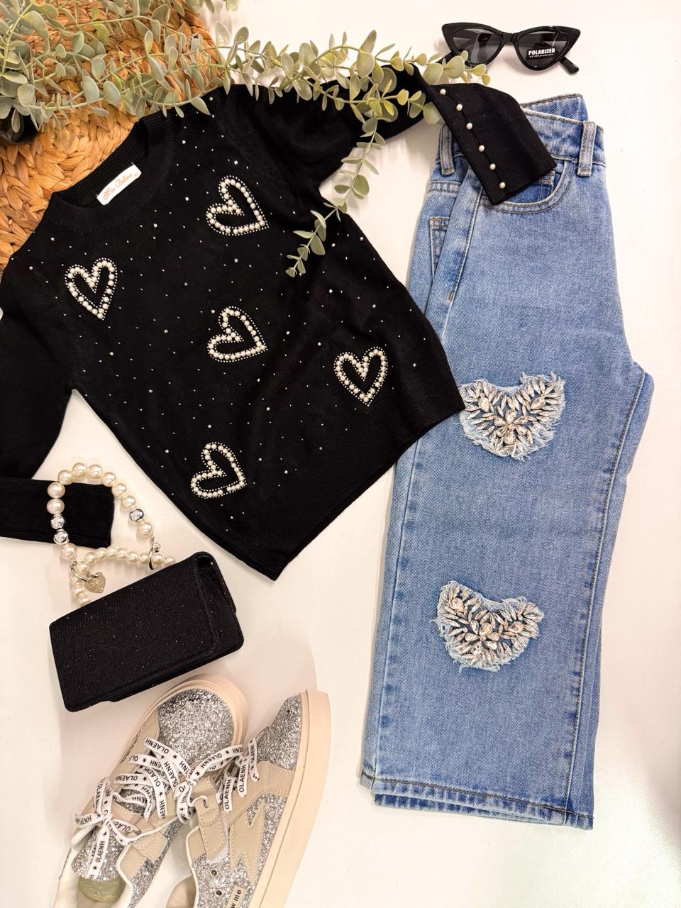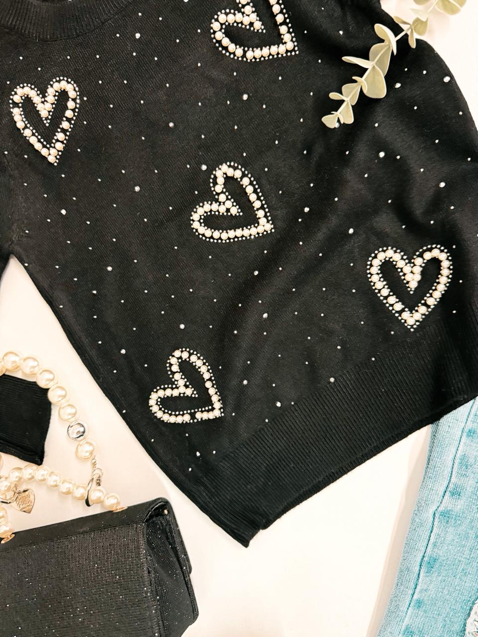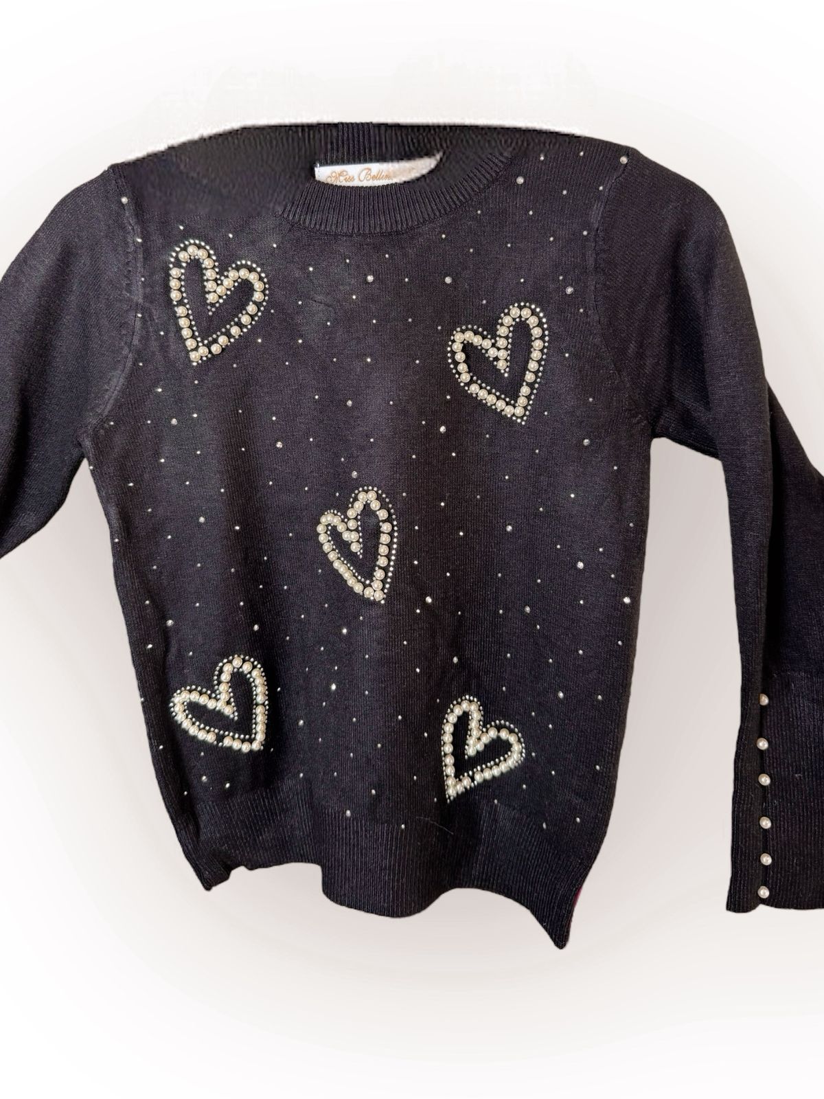 Isabella Kids Pearl Heart Sweater – Παιδικό πλεκτό μπλουζάκι με καρδιές και πέρλες μαύρο
