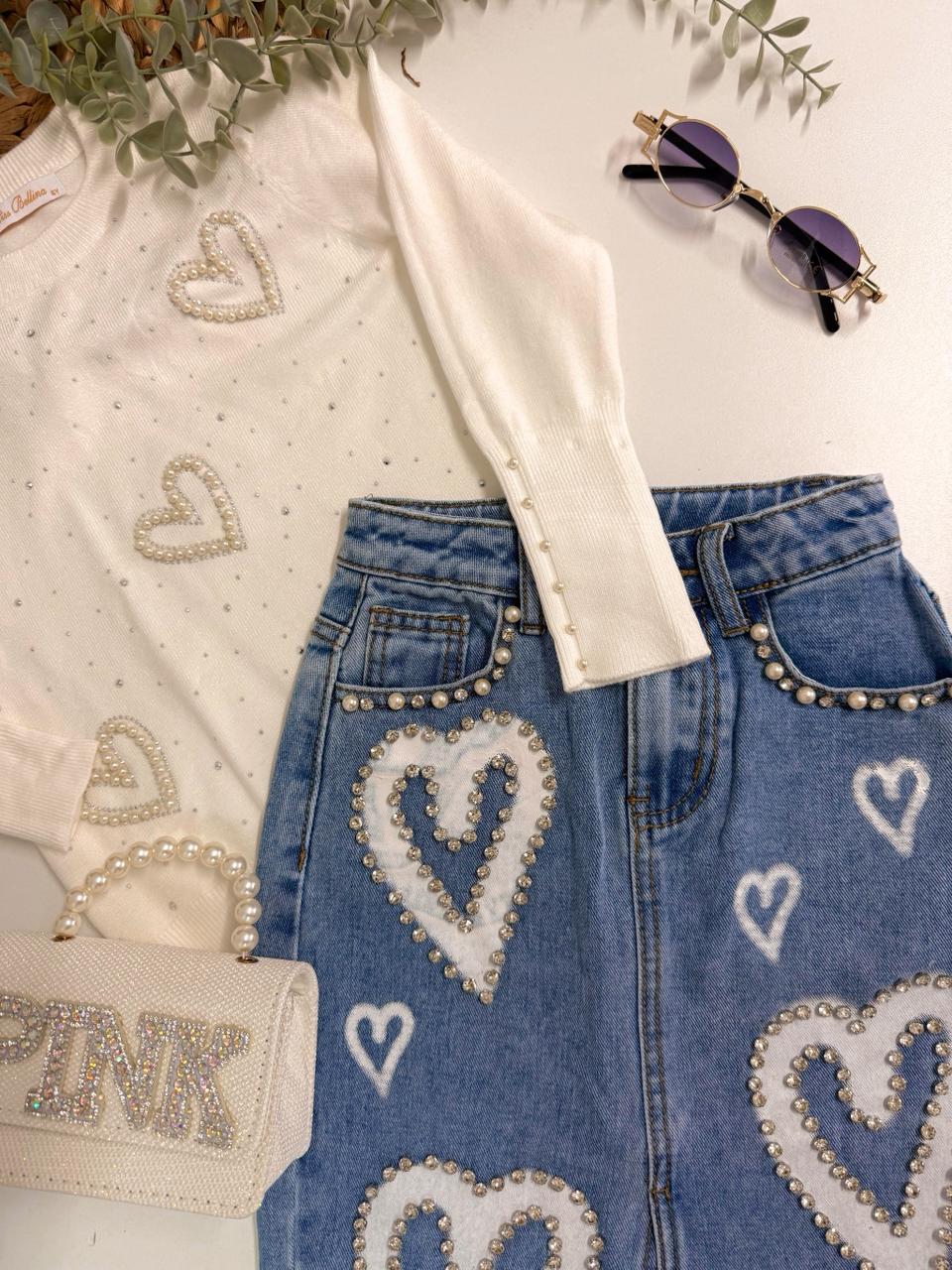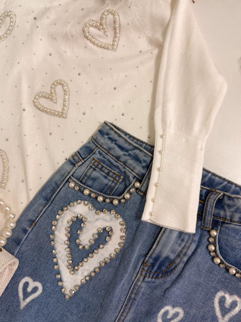 • Κομψό πλεκτό με καρδιές από πέρλες