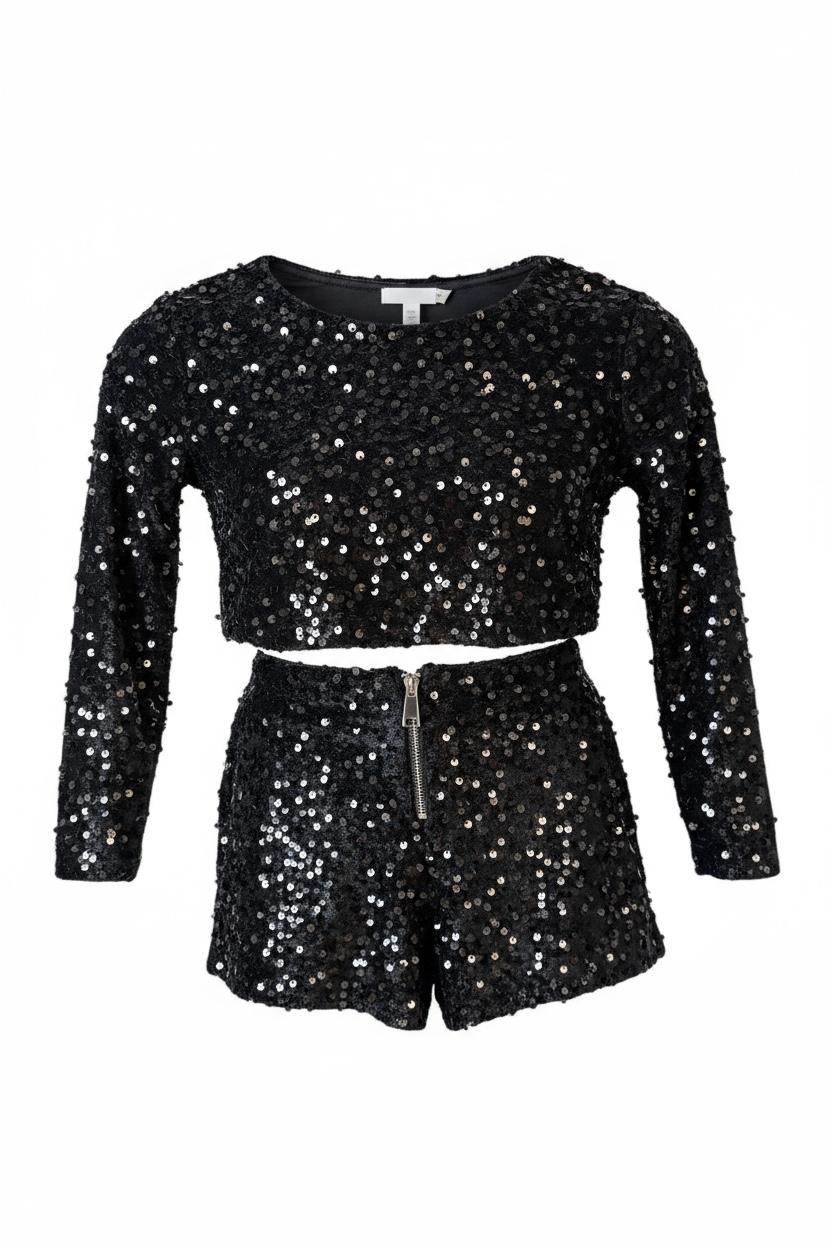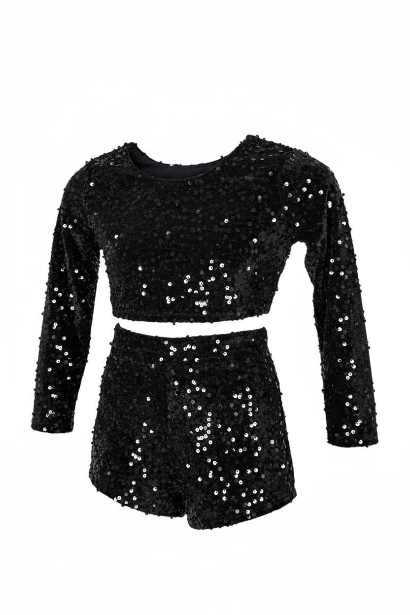 Αποτελείται από μπλούζα με μακριά μανίκια και σορτς, διακοσμημένα με εντυπωσιακές παγιέτες που χαρίζουν μοναδική λάμψη σε κάθε κίνηση.