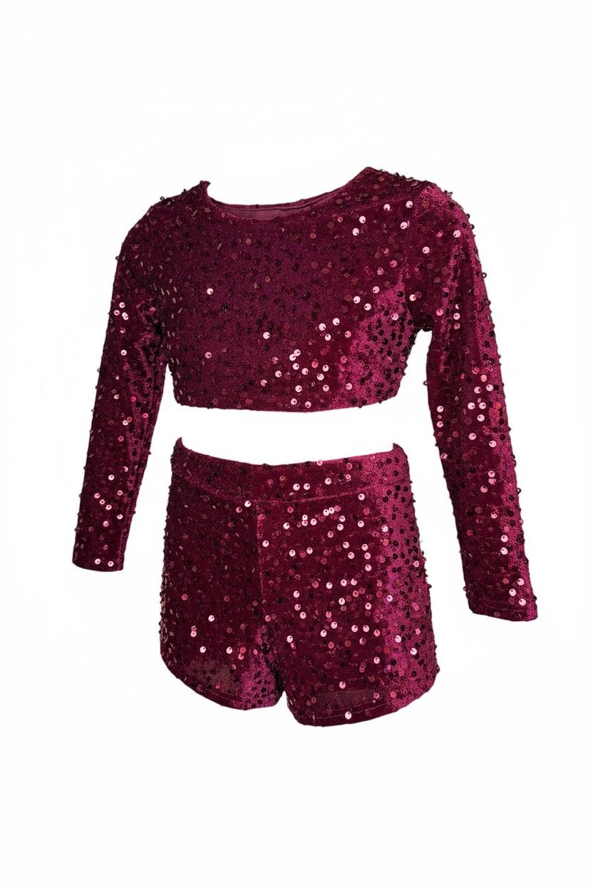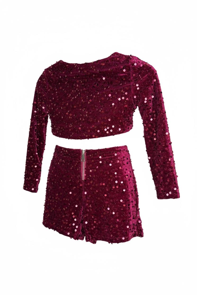Αποτελείται από μπλούζα με μακριά μανίκια και σορτς, διακοσμημένα με εντυπωσιακές παγιέτες που χαρίζουν μοναδική λάμψη σε κάθε κίνηση.