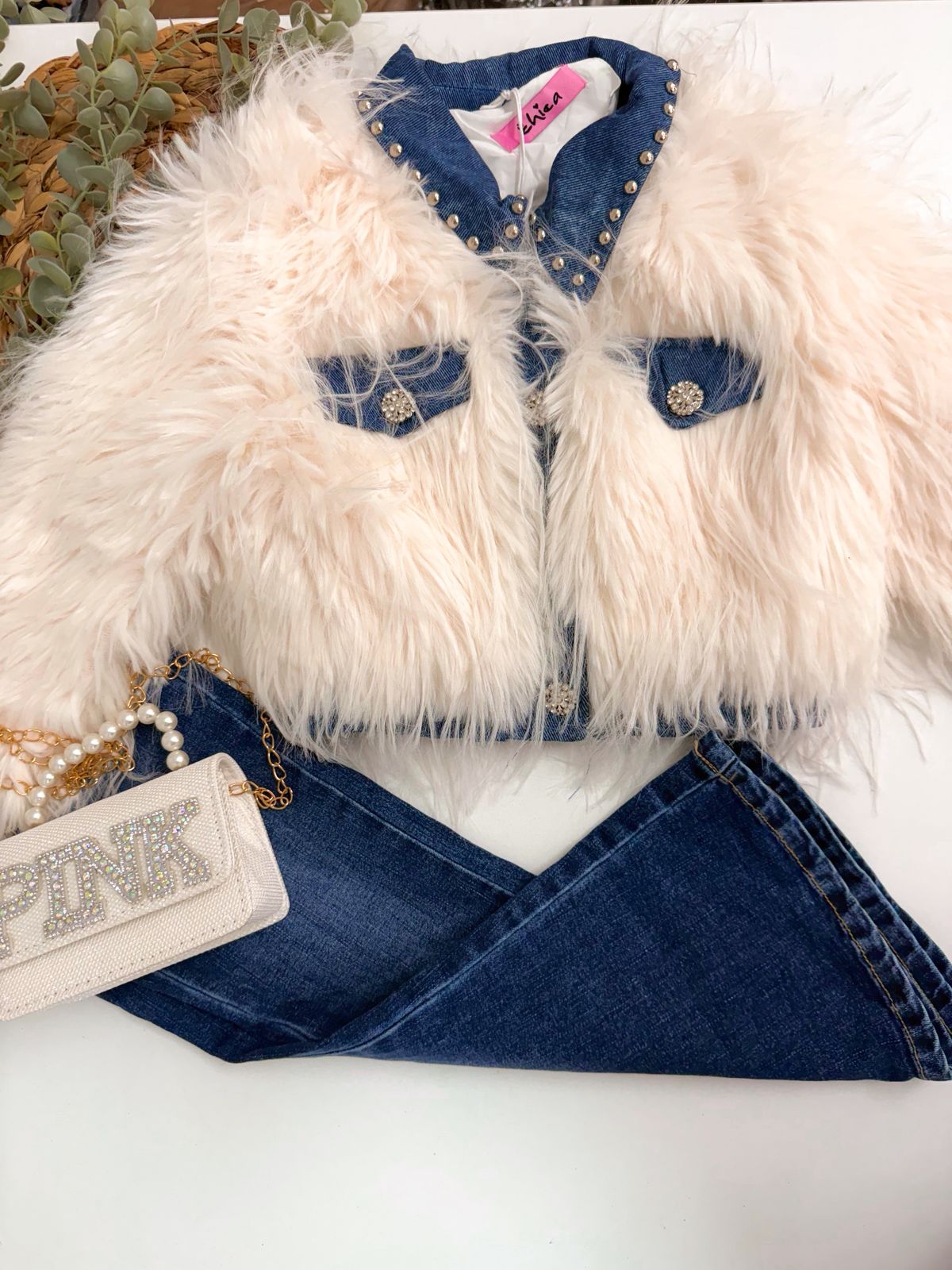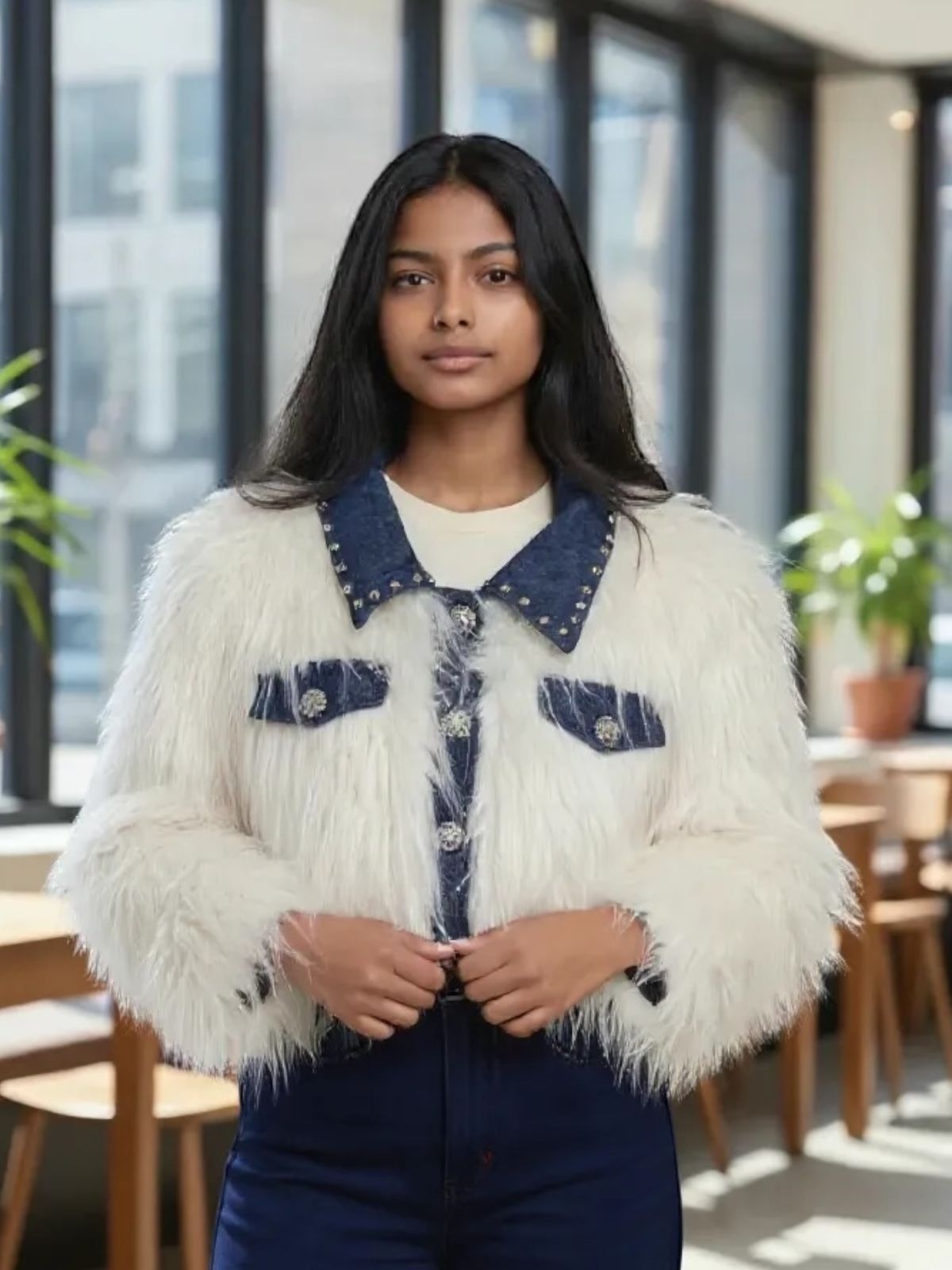 Το παιδικό γούνινο μπουφάν Mia συνδυάζει στυλ και ζεστασιά, αποτελώντας την απόλυτη επιλογή για τις μικρές fashionistas. Με εντυπωσιακή μακριά γούνα σε λευκό χρώμα και κομψές λεπτομέρειες σε σκούρο μπλε τζιν στον γιακά και στις τσέπες, δίνει μοναδικό χαρακτήρα σε κάθε εμφάνιση. Ιδανικό για βόλτες, γιορτές και ξεχωριστές περιστάσεις, κρατάει το παιδί σας ζεστό και ταυτόχρονα στυλάτο.