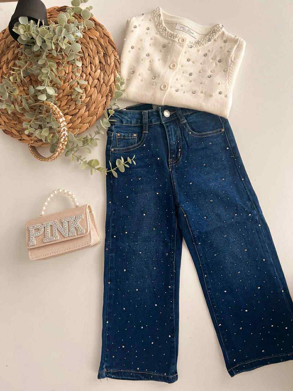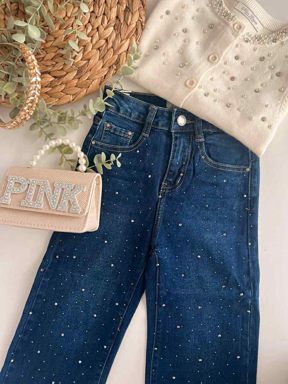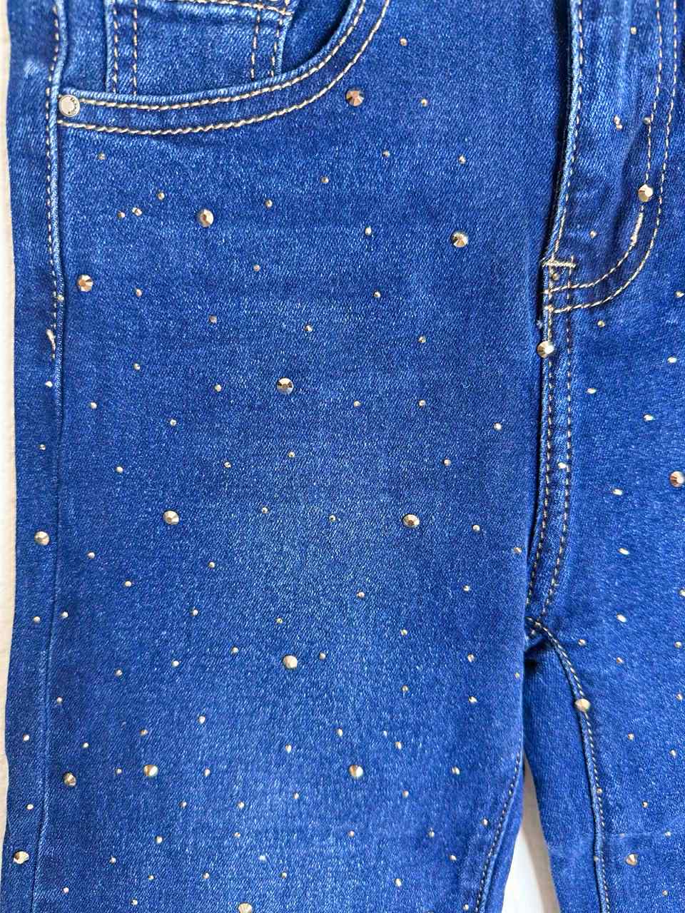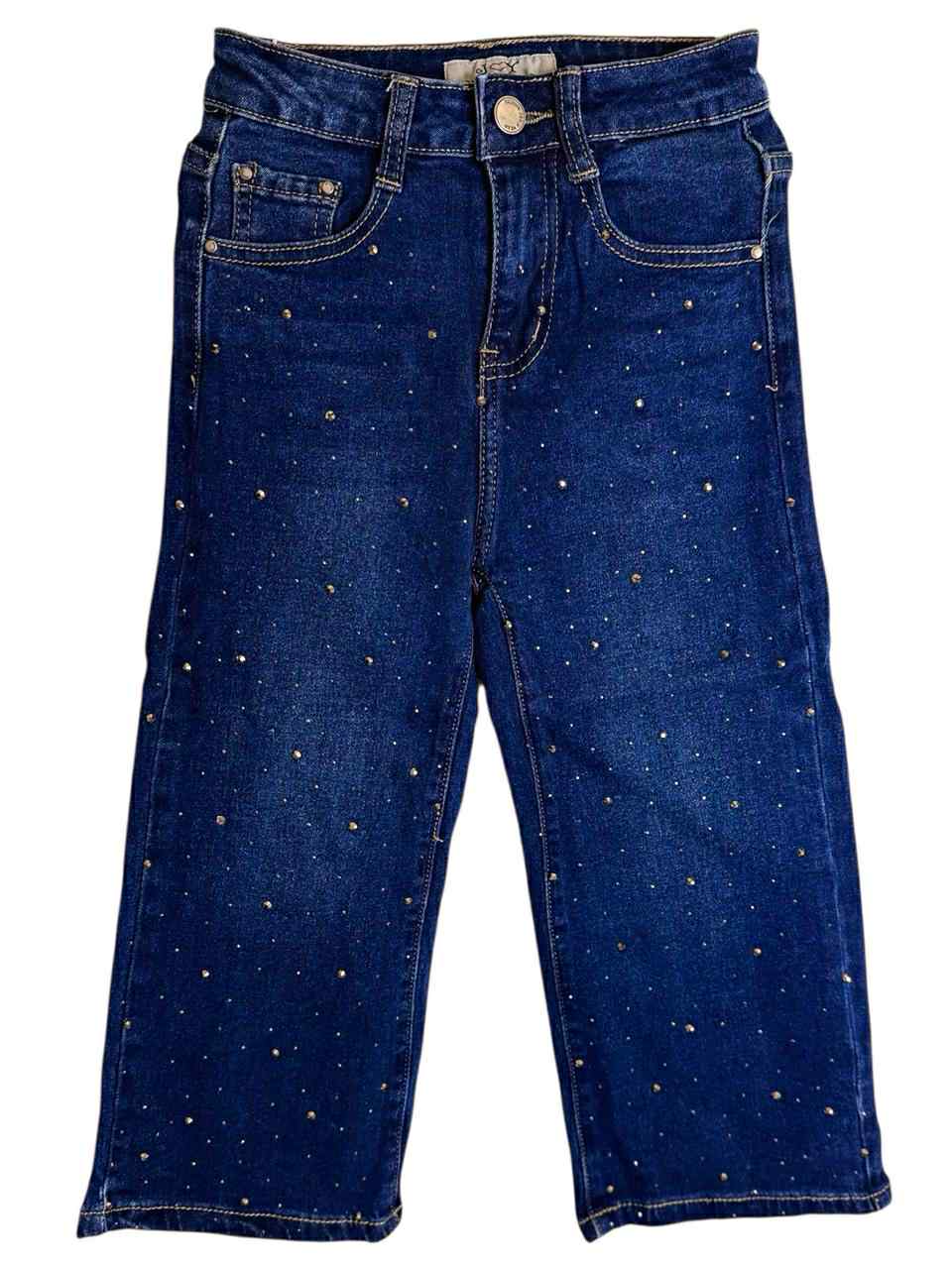Στυλάτο παιδικό τζιν σε μπλε σκούρα απόχρωση, διακοσμημένο με λαμπερά στρας που δίνουν μια παιχνιδιάρικη πινελιά. Κατασκευασμένο από μαλακό, ανθεκτικό , ελαστικό ύφασμα για άνεση όλη μέρα. Ιδανικό για μοντέρνες εμφανίσεις στο σχολείο και τις βόλτες. Διαθέτει ρυθμιζόμενο λάστιχο εσωτερικά.