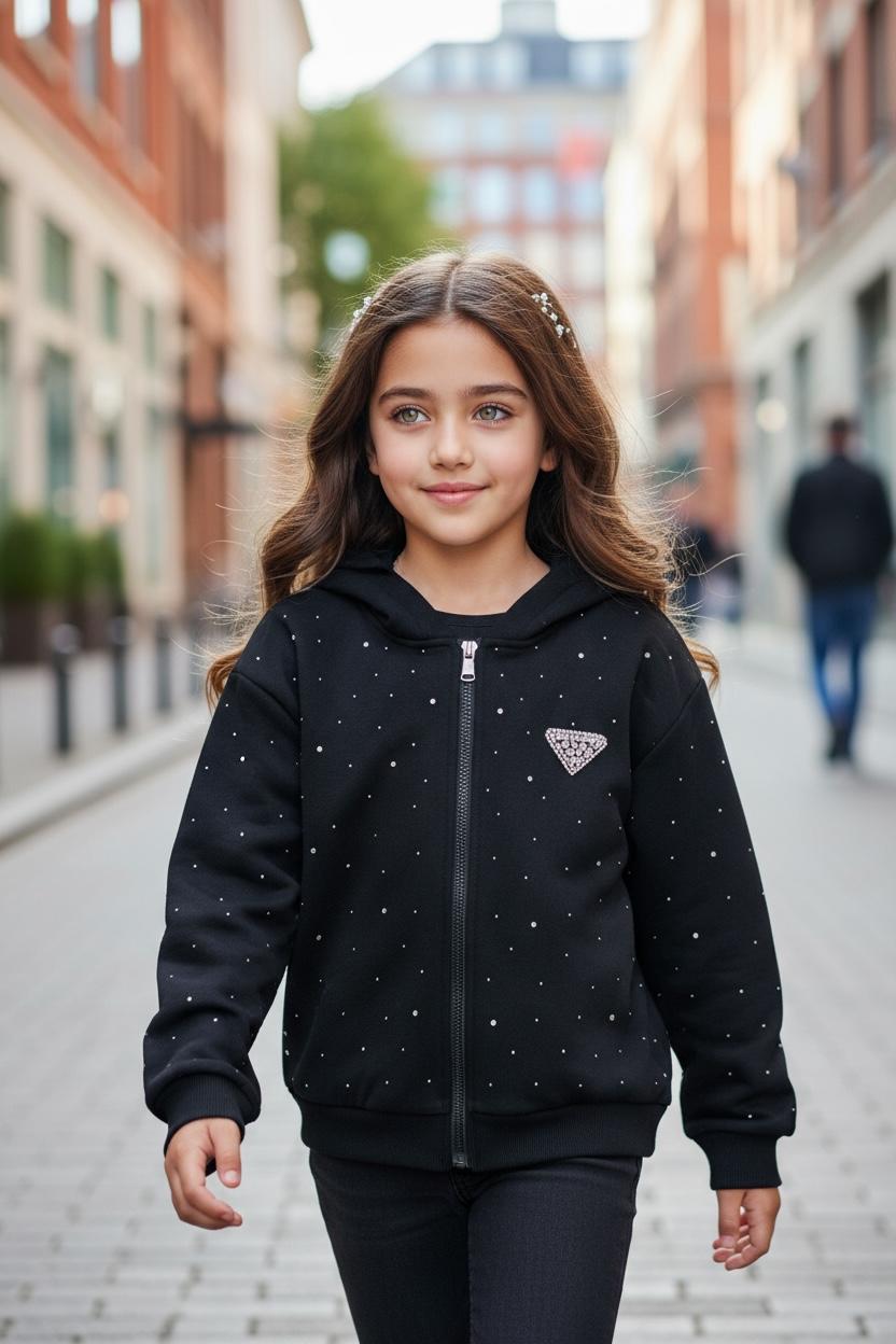 Κομψή και άνετη παιδική ζακέτα χαρίζει στυλ ακόμα και στις casual εμφανίσεις. Περιλαμβάνει ζακέτα με φερμουάρ διακοσμημένη με λαμπερά στρας που προσθέτουν μια διακριτική glam πινελιά. Το μαλακό ύφασμα προσφέρει άνεση όλη την ημέρα, ενώ η μοντέρνα γραμμή το καθιστά ιδανικό για βόλτες, δραστηριότητες ή stylish loungewear.