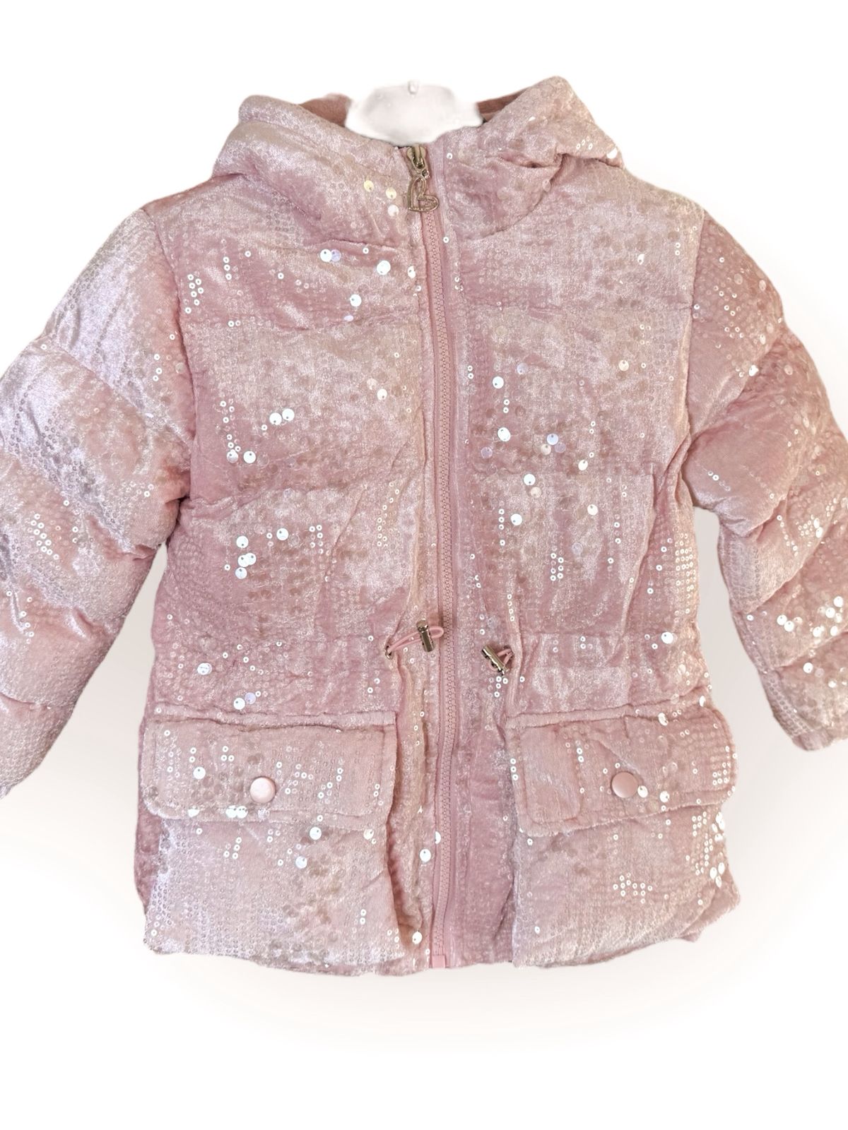 Λαμπερό και στιλάτο, αυτό το παιδικό μπουφάν σε ροζ απόχρωση είναι διακοσμημένο με παγιέτες που χαρίζουν μια εκθαμβωτική εμφάνιση. Διαθέτει πρακτικές τσέπες στο μπροστινό μέρος, κλείσιμο με φερμουάρ και άνετη γραμμή που προσφέρει ελευθερία κινήσεων. Ιδανικό για ξεχωριστές περιστάσεις, αλλά και για να προσθέσει μια νότα λάμψης στις καθημερινές εμφανίσεις.