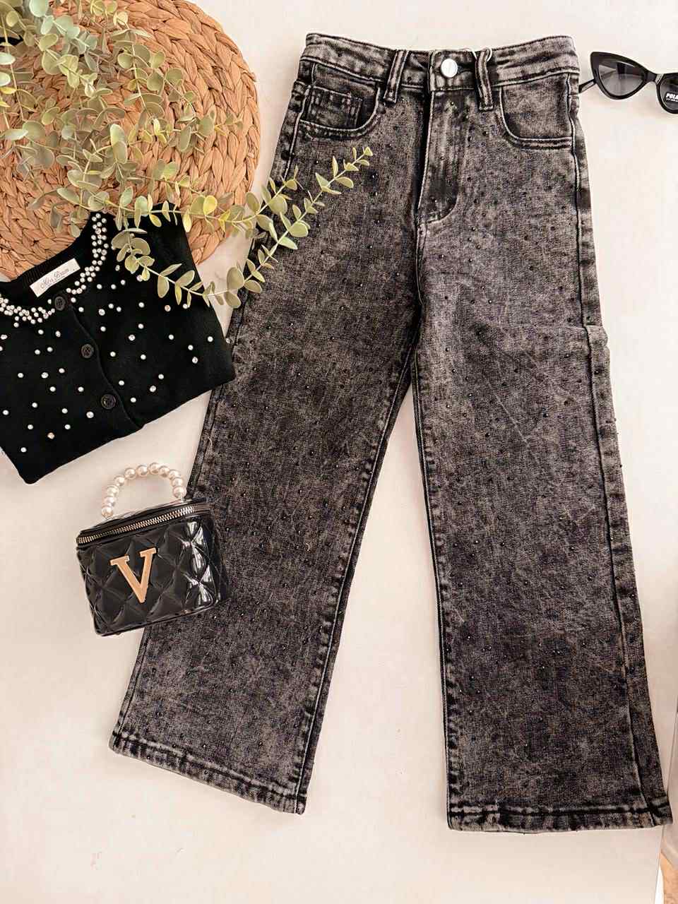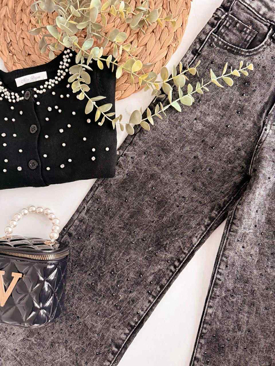 Μοντέρνο παιδικό μαύρο τζιν διακοσμημένο με λαμπερά στρας που αστράφτουν στο φως και χαρίζουν μοναδικό στυλ. Το εσωτερικό ρυθμιζόμενο λάστιχο στη μέση εξασφαλίζει τέλεια εφαρμογή και άνεση σε κάθε δραστηριότητα. Ιδανικό για καθημερινές και πιο ξεχωριστές εμφανίσεις.