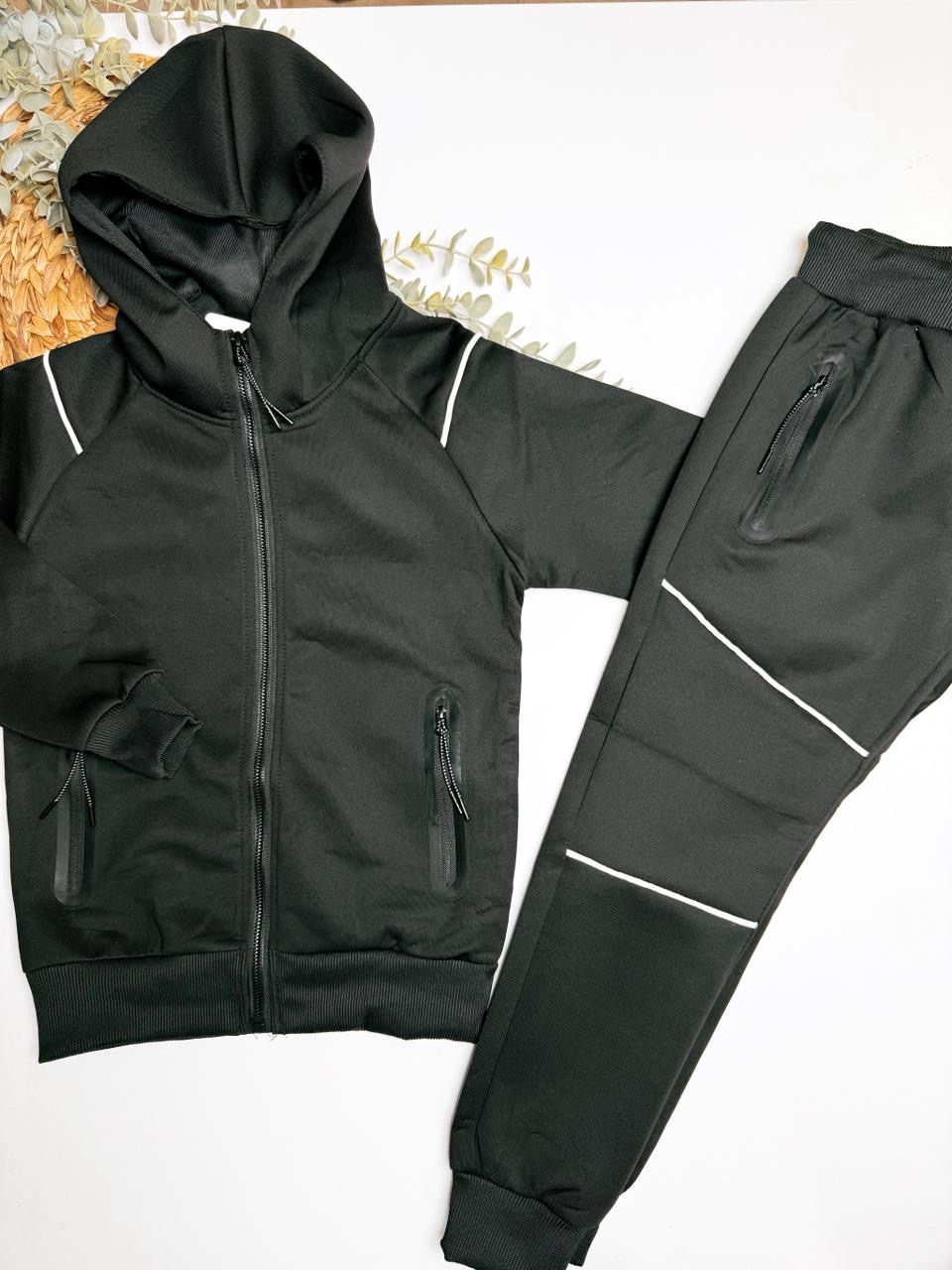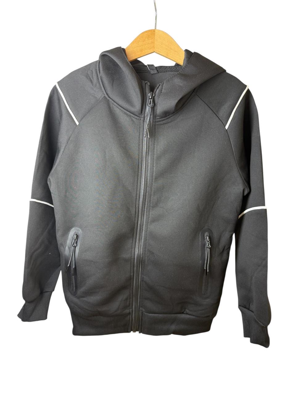 ???? Ζακέτα με κουκούλα και πρακτικές τσέπες, διακοσμημένη με διακριτική λευκή ρίγα που προσθέτει μοντέρνα πινελιά