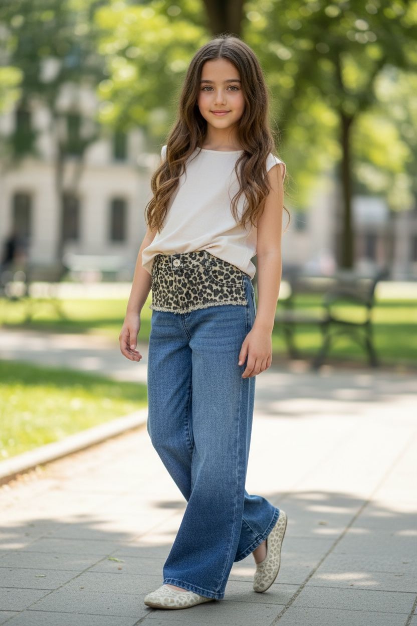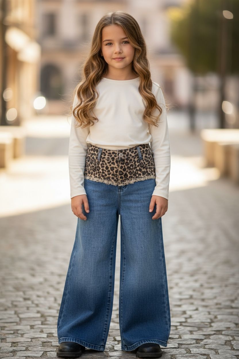 Το Wild Denim Blue Jeans είναι ένα μοναδικό παιδικό τζιν σε μπλε απόχρωση, με εντυπωσιακή animal print λεπτομέρεια στο πάνω μέρος.
